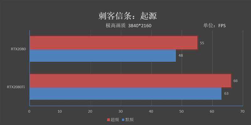 在《刺客信条:起源》的测试中,RTX2080的帧率达到了55FPS,比默频提高了7帧;RTX2080Ti的帧率也达到了66FPS,相比默频提高了3帧。