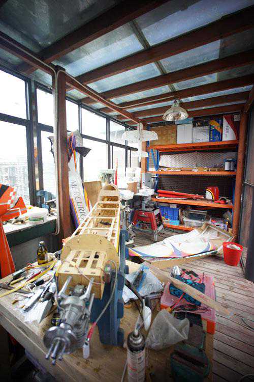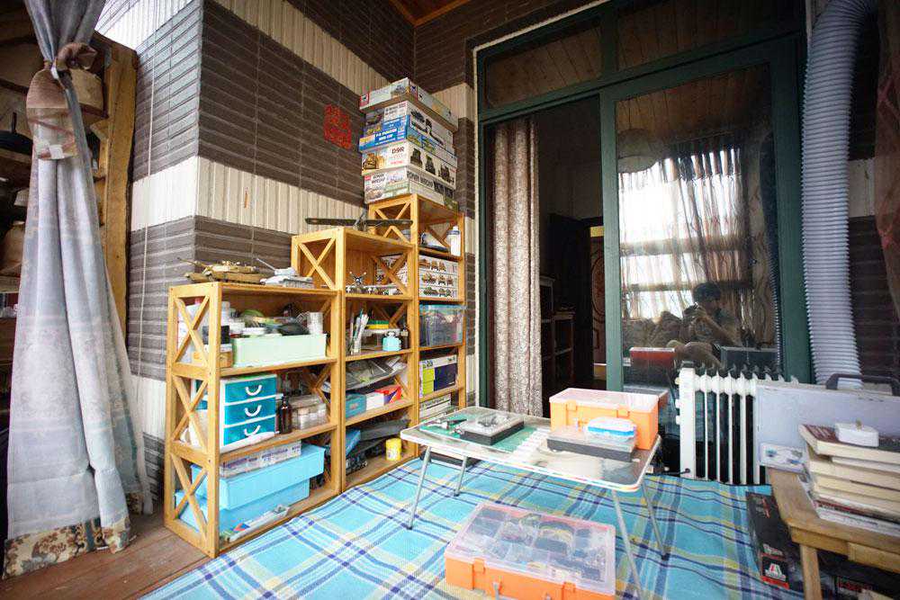 注意右边那根很粗的排风管道,那是给模型喷漆的时候,以免污染这个空间,抽风用的。
