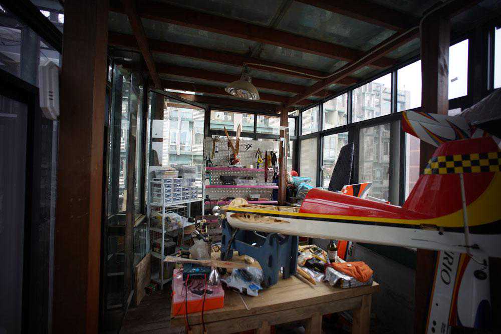 以前,机长在二楼的上面,自己建了一间30平方米的视听室,不过后来算违建被拆掉了。不过还好,从视听室出去,还是有一个露台,而这里则是机长空间。