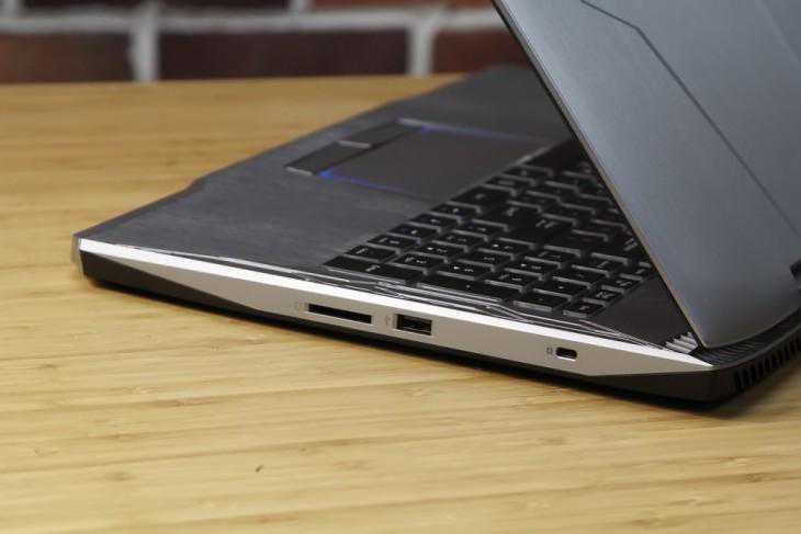机身右侧配置了一个SD卡读卡器,一个接口,以及防盗锁孔。
