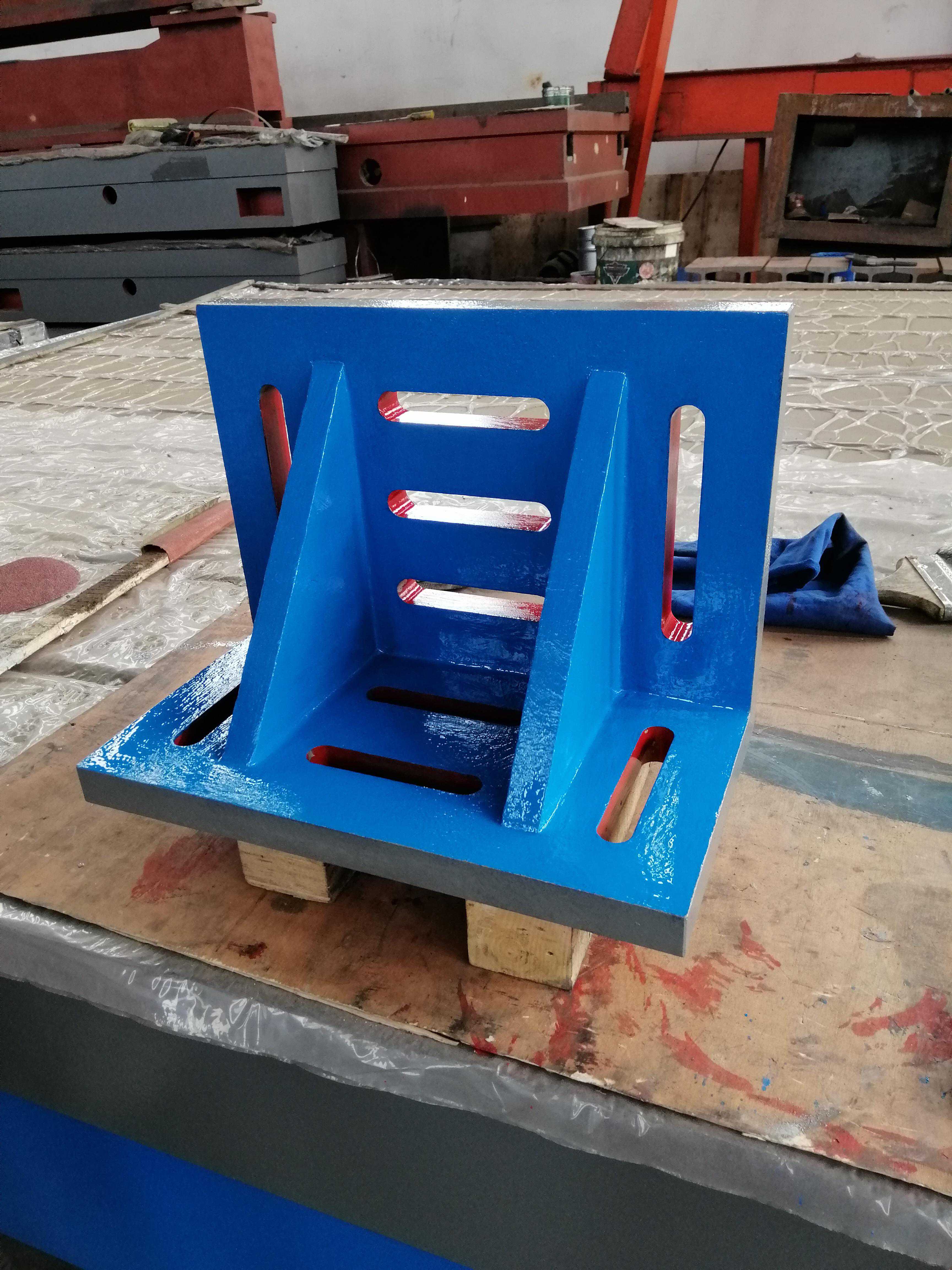 铸铁弯板用于零部件的检测和机械加工中的装夹,用于检验工件的90度角,维修设备时检验零部件相关表面的互相垂直度,还常用于检验、安装机床机械的垂直检查,并能在铸铁平板上检查工件的垂直度,适用于高精度机械和仪器检验和机床之间不垂直度的检查。用于检验、安装机床机械的垂直面检查,并能在铸铁平板(平台)上检查工件的垂直度,适用于高精度机械和仪器检验和机床之间的不垂直度的检查。