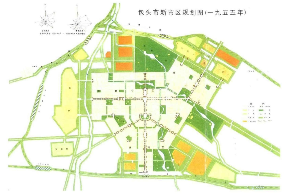 1955年1月11日国家建设委员会召集会议讨论包头城市规划问题,会议最后决定在河东集中建设一个城市优于分散建设两个城市。1955年3月,国家建委包头修订包头城市规划方案,并以60万人口为规划指标的依据1来编制新市区城市规划。