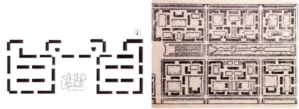 包头钢铁大街工人住宅区(左)、苏联马格尼托格尔斯克冶金工人大街住宅区(右)