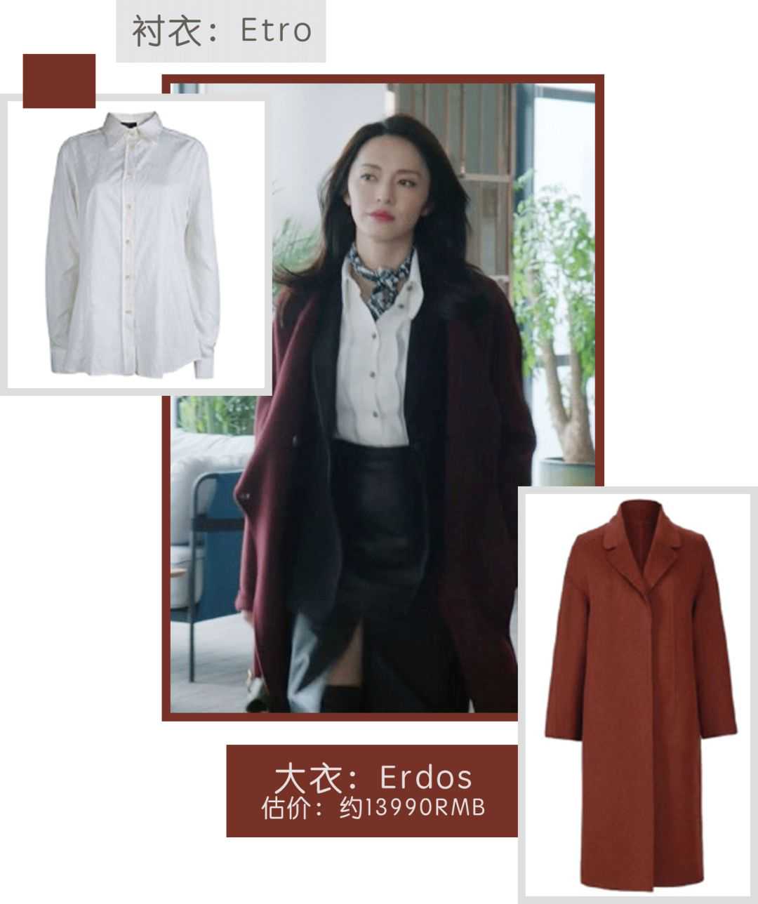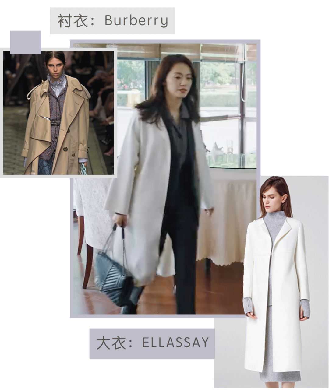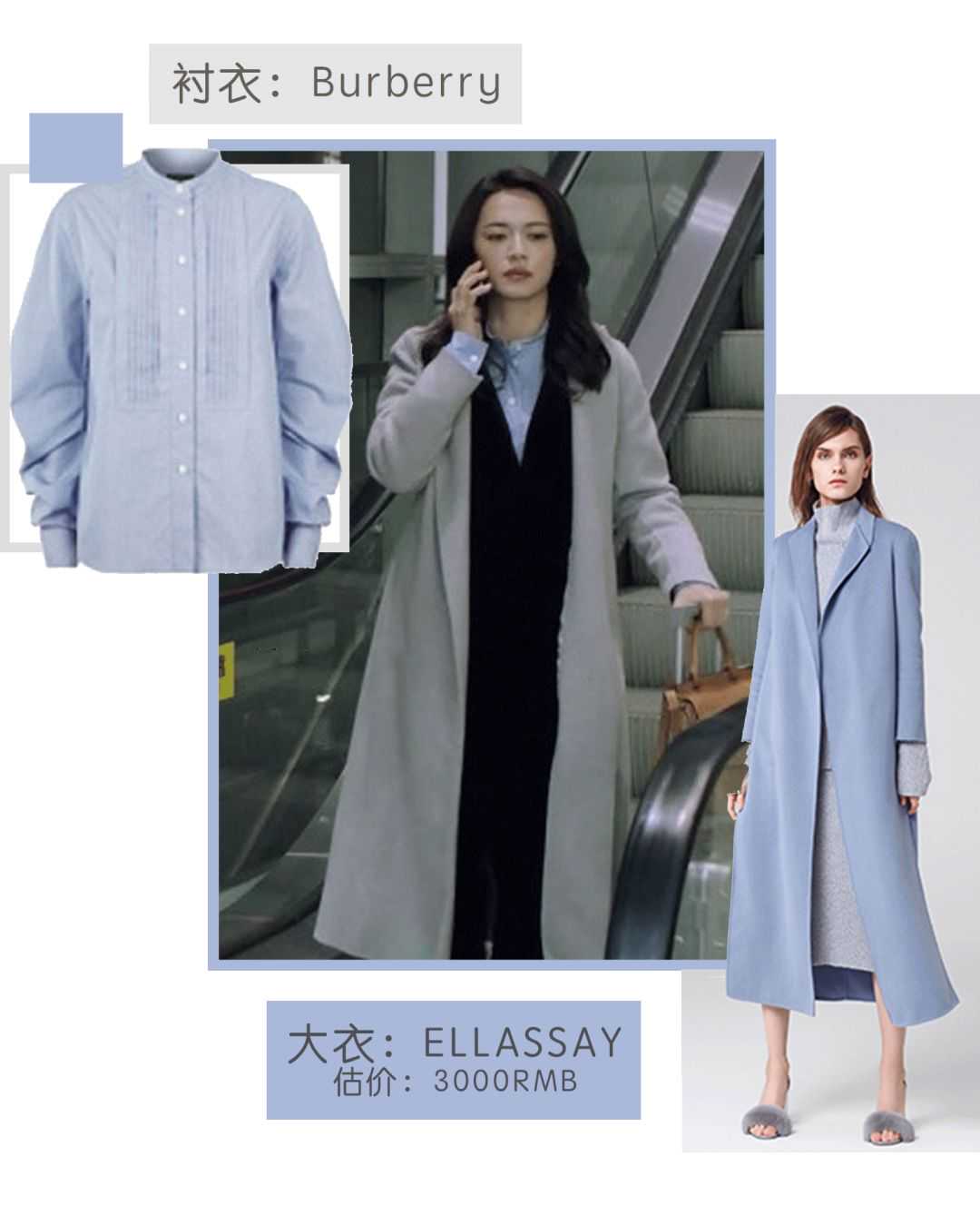 金领苏在剧中最爱穿的单品是大衣,品牌从轻奢国货到一线大牌都有。歌力思ELLASSAY的大衣,一件3000块左右。而这种直筒长款版型的,明玉有四件。