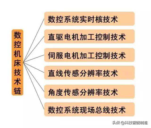 数控机床的技术链有六大部分组成,概括来讲,包括数控系统实时核技术、直驱电机加工控制技术、伺服电机加工控制技术、直线传感分辨率技术、角度传感分辨率技术和数控系统现场总线技术等。