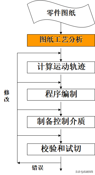 数控加工程序编制:从零件图纸到制成控制介质的全过程。