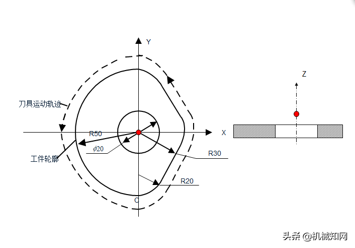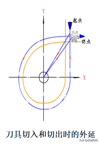 原则:尽量采用切向切入/出,不用径向切入/切出,以避免由于切入/出路线的不当降低零件的表面加工质量,以保证工件轮廓光滑。