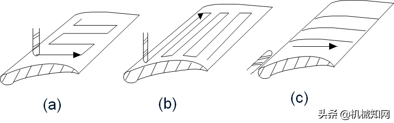 刀具应避免在工件轮廓面上垂直上、下刀而划伤工件表面;尽量减少在轮廓加工切削过程中的暂停(切削力突然变化造成弹性变形),以免留下刀痕;