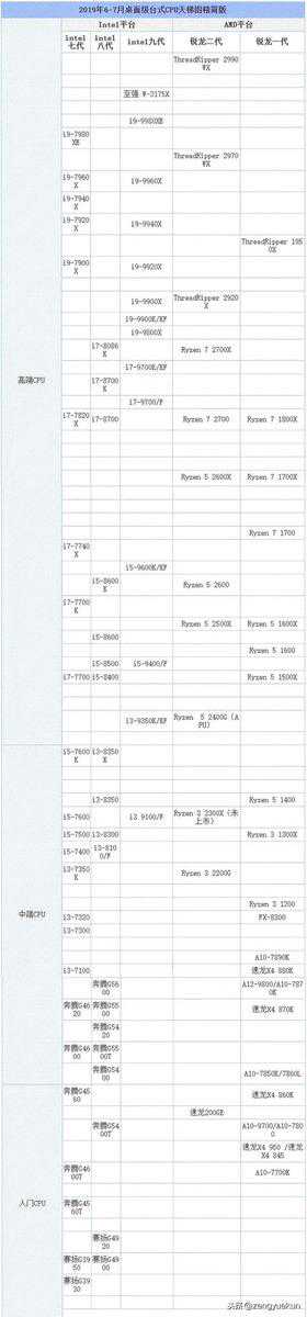 cpu天梯图?笔记本cpu天梯图【2019年06月最新】