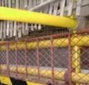 (4)、脚手架内侧形成临边的(如遇大开间门窗洞等),在脚手架内侧在0.6m、1.2m高位置设置2道防护栏杆和18cm高挡脚板。