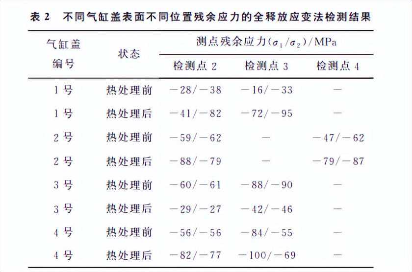 (1)通过压痕应变法和全释放应变法测得气缸盖表面的残余应力基本为压应力,两种方法测得的残余应力水平相当。除3号气缸盖外,其余气缸盖热处理后的表面压应力基本没有下降。