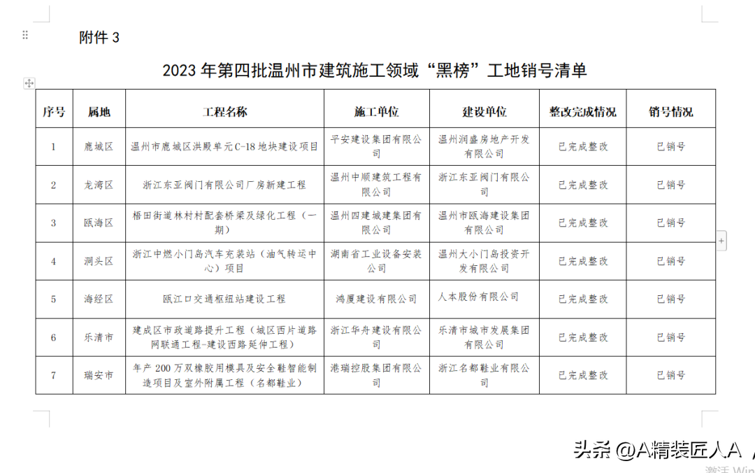 3.2023年第四批温州市建筑施工领域“黑榜”工地销号清单.wps