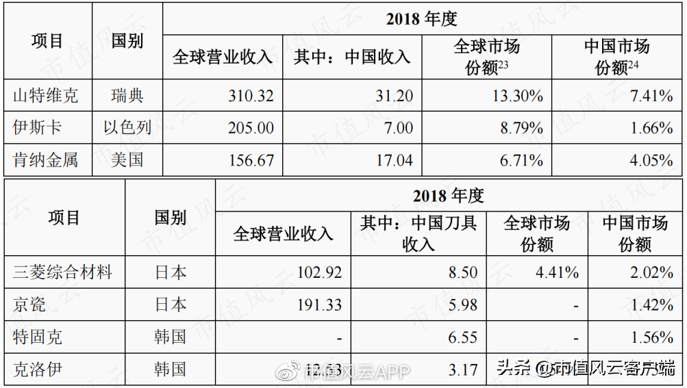 国际方面,参考2018年数据,占据中国市场份额较高的主要是欧美企业,大部分集中在国内航空航天、军工和汽车工业等高端刀具市场;其次是日韩企业,主要通过经销商在国内进行批发销售,产品价格普遍高于国产刀具。