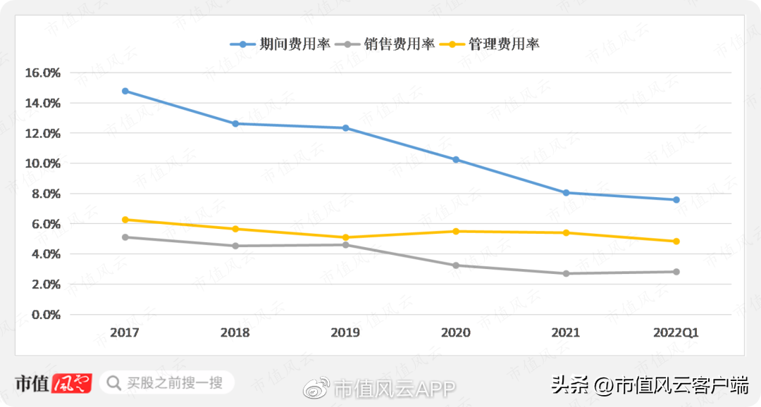 公司净利率提升主要是由于运营效率的改善,可以看到近几年期间费用率持续下降,其中销售费用率下降明显。