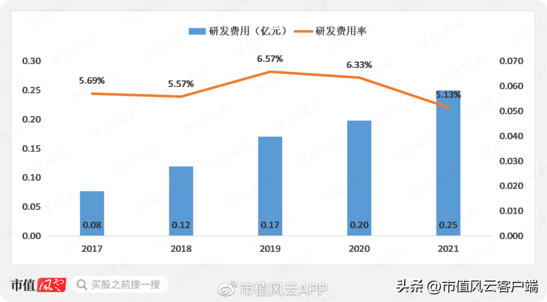 研发投入方面,公司秉承“集中优势、单品突破”的研发战略,近几年研发费用持续增长,研发费用率均在5%以上,但近两年有所下滑,受当前营收规模影响,研发投入绝对值不高。