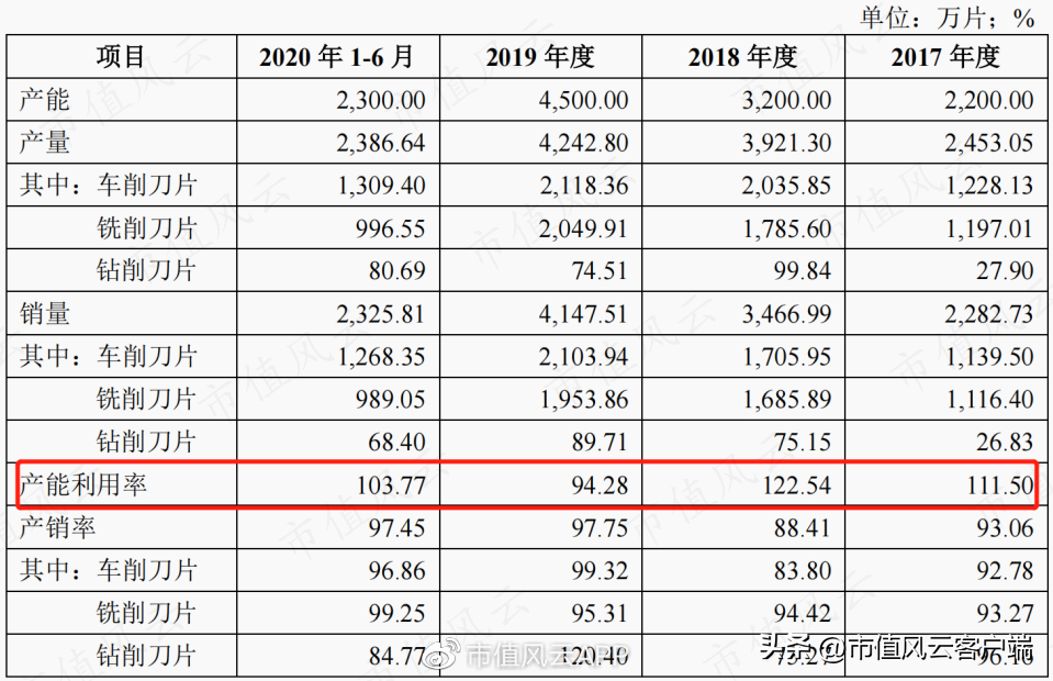 2020年产能利用率高于2019年,较高的产能利用率使车削刀片单位制造费用有所下降。