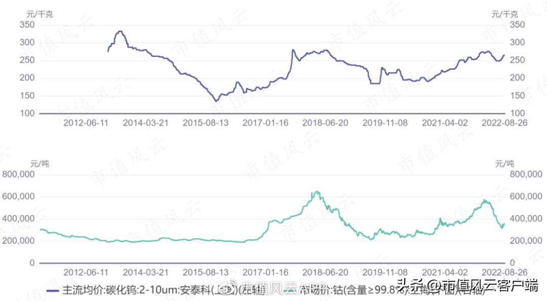 目前,碳化钨粉市场价格处在相对高位,钴粉市场价格处在历史中位数水平。
