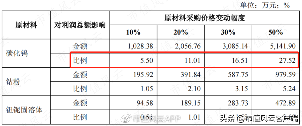 以2021年为例,通过敏感性分析,碳化钨的采购价格变动对公司利润总额的影响较大,钴粉和钽铌固溶体采购价格变动对利润总额影响相对较小。
