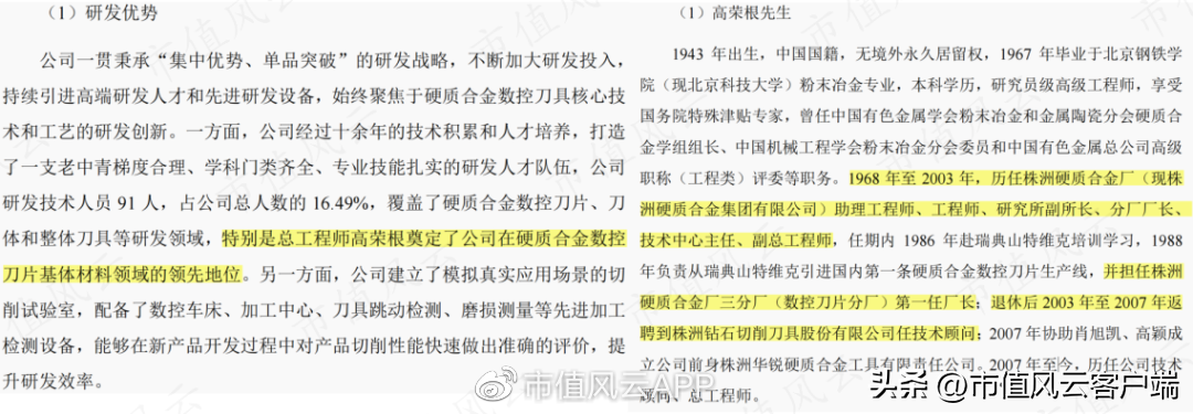 高荣根作为公司的总工程师,其过往经历与株洲硬质合金(公司供应商)和株洲钻石(公司竞争对手)均有较深交集,且基本属于株洲硬质合金的元老级人物。