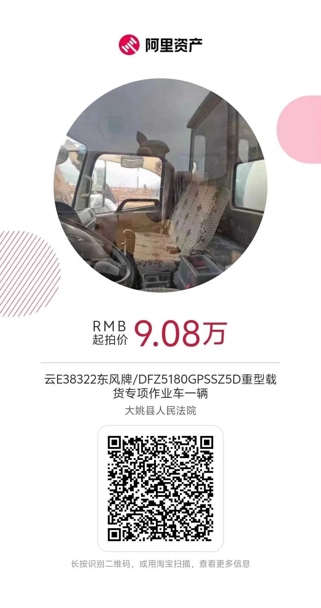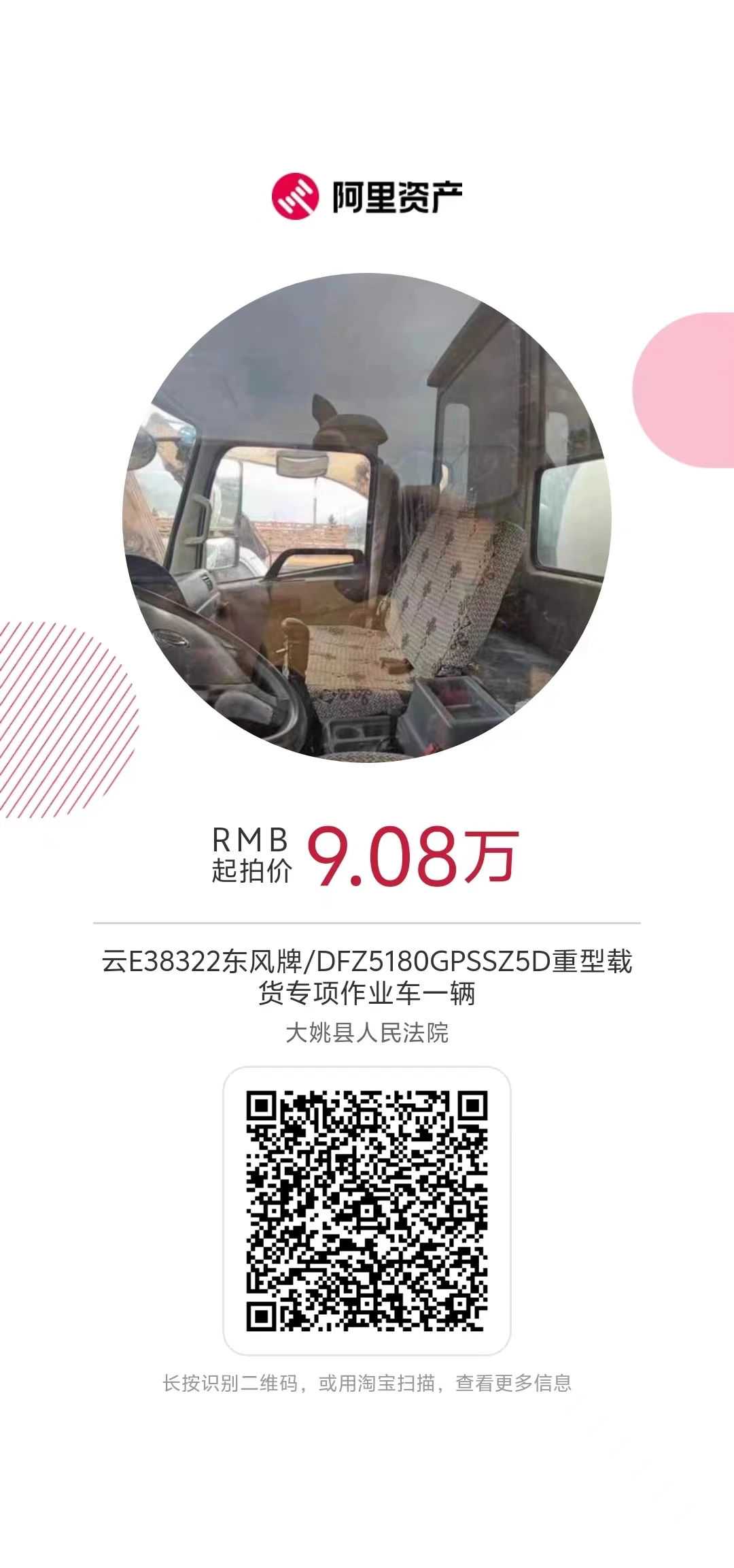 拍卖标的:云E38322东风牌/DFZ5180GPSSZ5D重型载货专项作业车一辆。