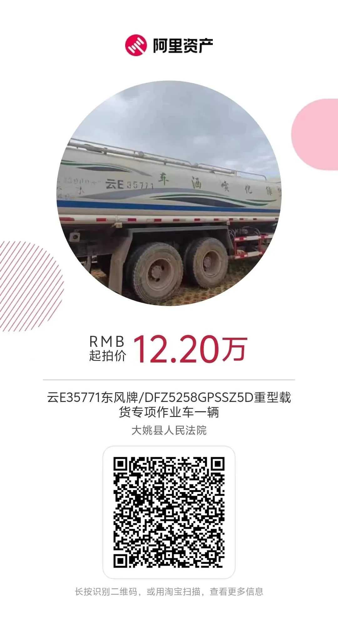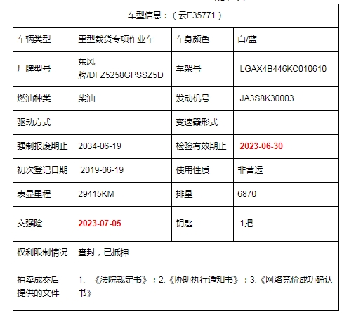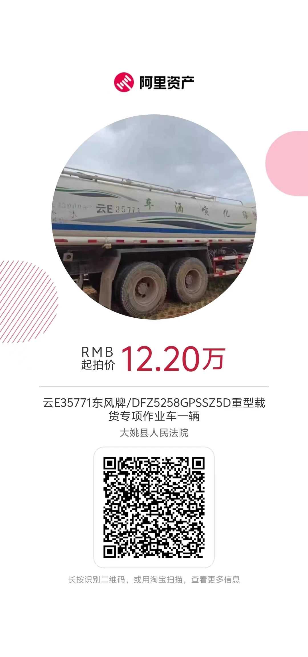 拍卖标的:云E35771东风牌/DFZ5258GPSSZ5D重型载货专项作业车一辆。