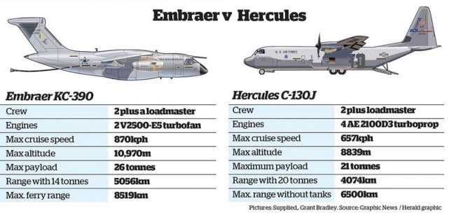 KC-390将成为C-130J的直接竞争对手,该机不仅拥有更低的总寿命成本优势,飞行速度和高度也大幅超出