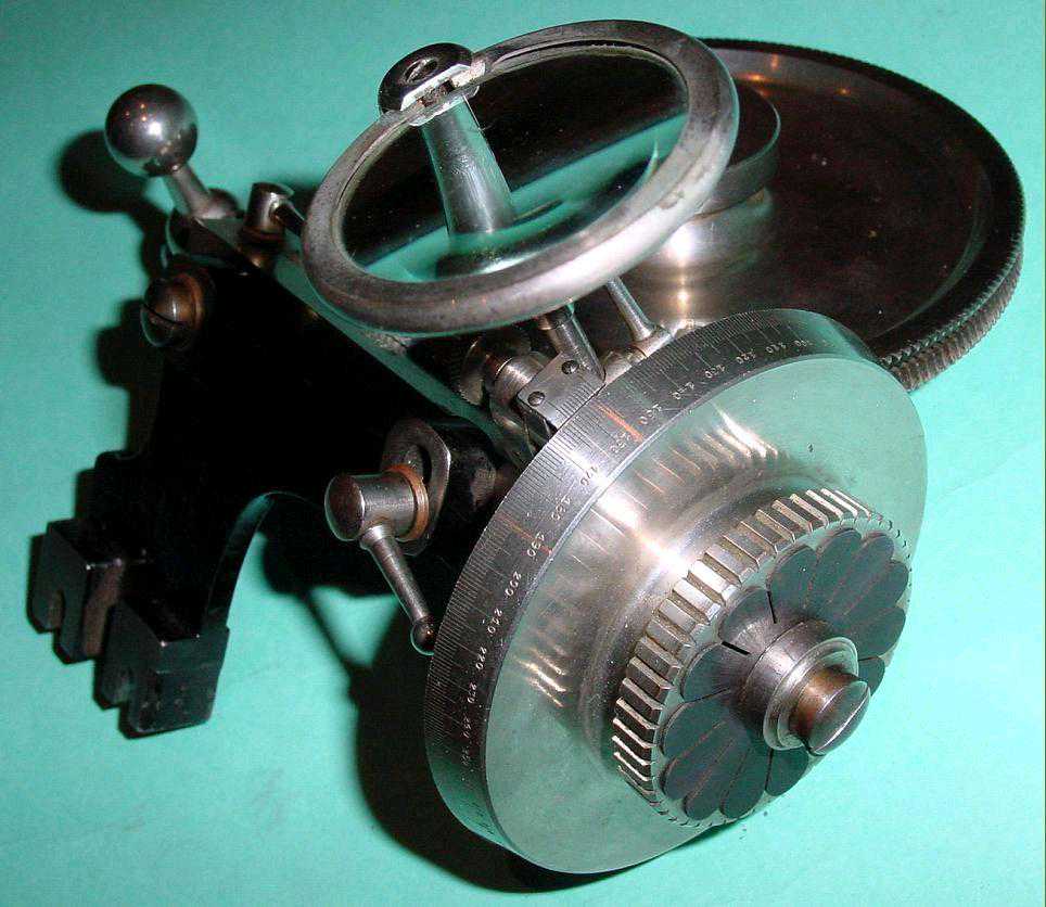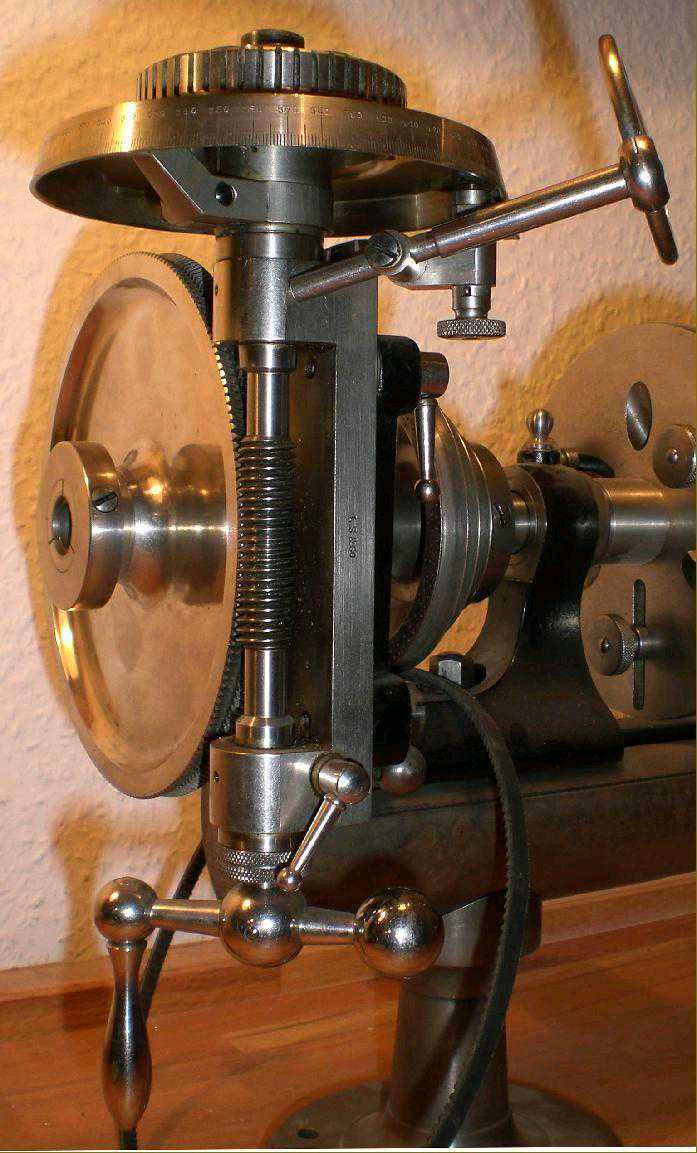 Lorch为其WW和LL车床提供了一种独特的分度头设计,该分度头允许在不使用变速轮的情况下创建2至400的所有分度。下图显示了特殊头,该头安装在1920年代制造的LL车床上。