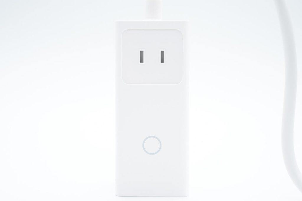 插座依旧是该系列经典的长条方柱造型机身,PC材质白色外壳,表面磨砂处理,另外自带三脚插头电源线。