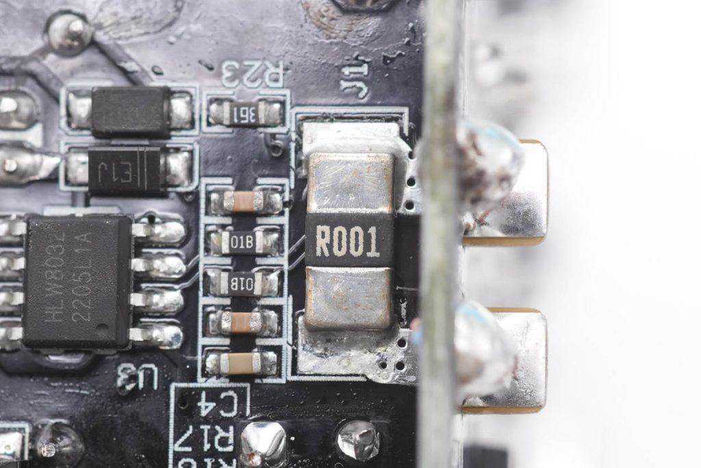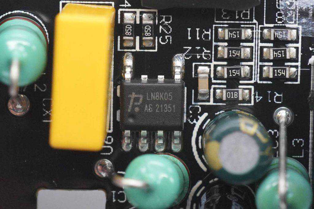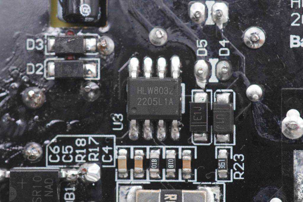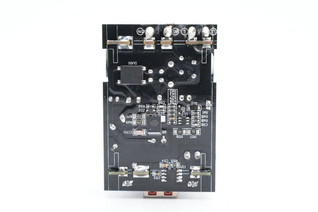 交流输入分为两路,其中一路连接到插座,另外一路连接到快充模块。快充模块PCBA背面一览,焊接整流桥,氮化镓主控芯片,氮化镓开关管和同步整流芯片。