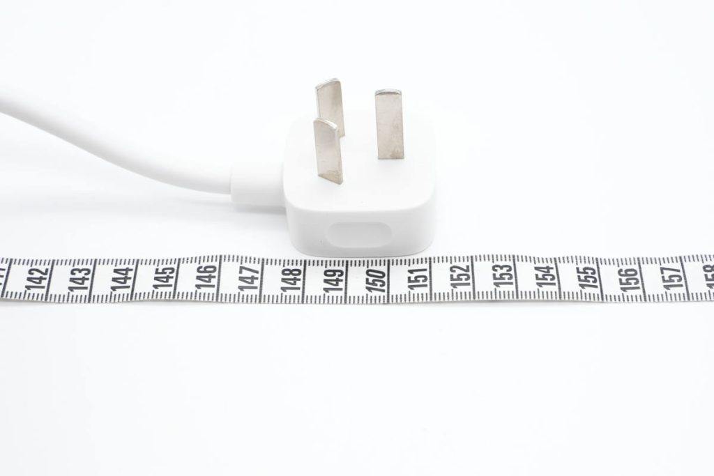 插头插脚套有塑料壳保护,两侧设有小凹面方便插拔使用。