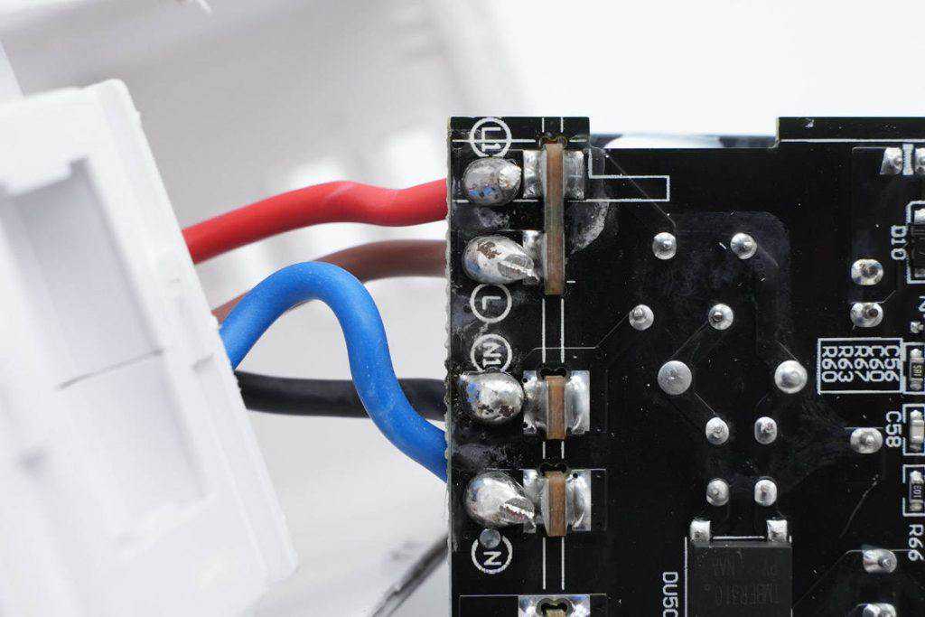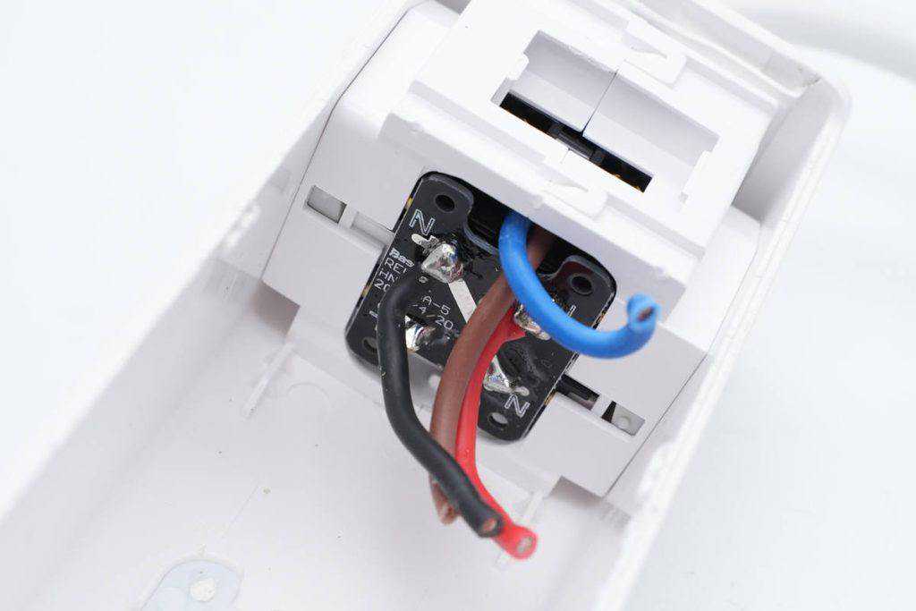 其中蓝色和棕色导线连接到快充模块供电,红色和黑色导线连接插座模块供电。