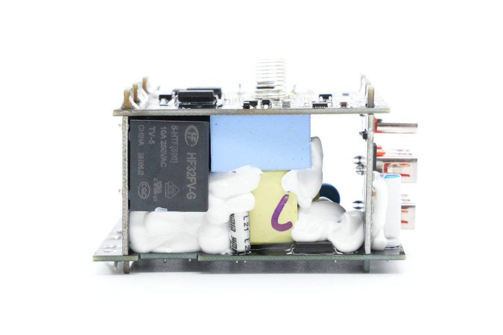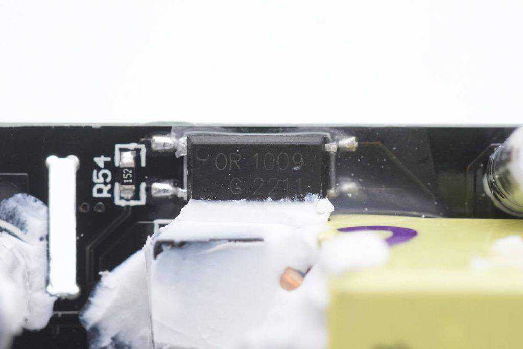 剪断导线取出快充模块,外壳内部触摸区域以及指示灯特写。