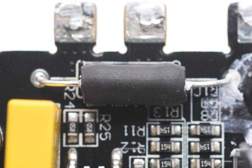 差模电感特写,采用工字磁芯绕制,外套热缩管绝缘。