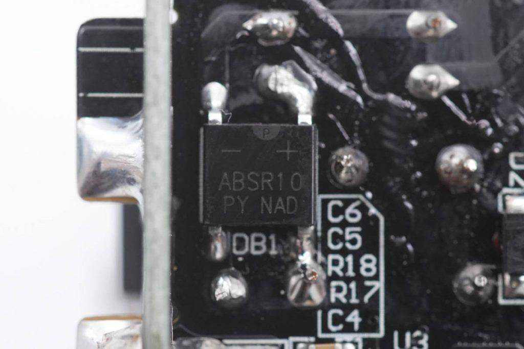电源输入端整流桥来自平伟,型号ABSR10,规格1A1000V。整流输出共分为两路输出,其中一路用于非隔离降压电路,另外一路为触摸控制电路供电。