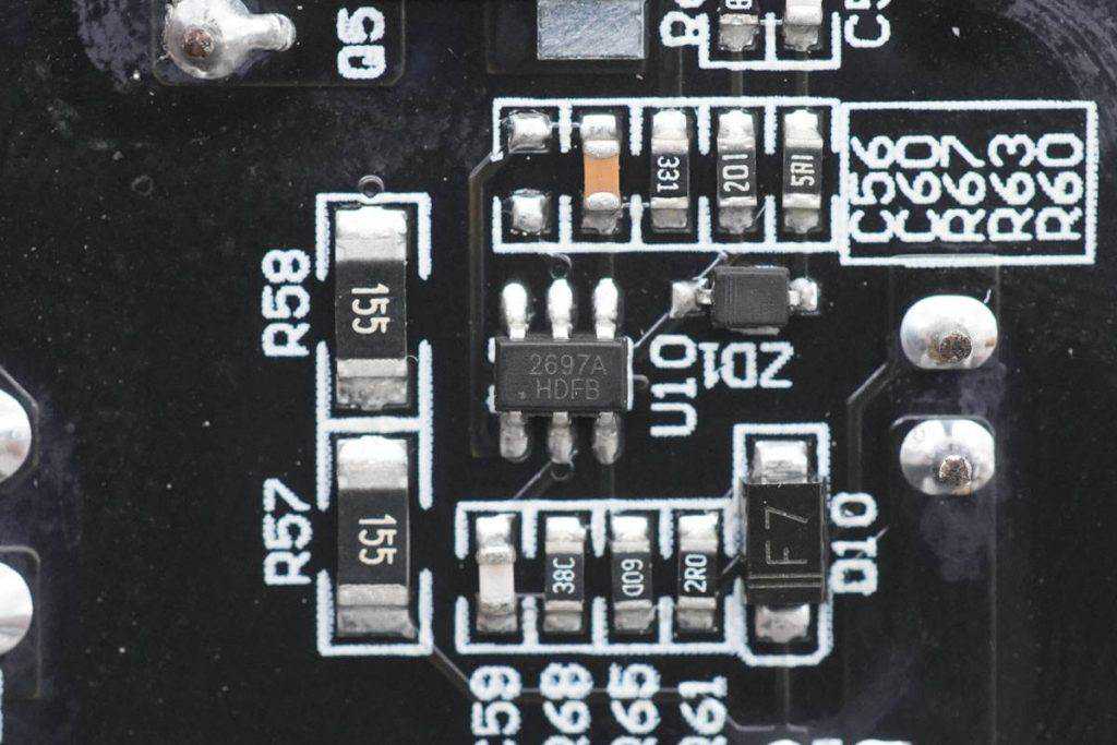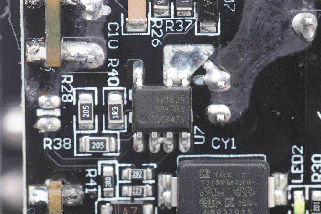 小板上降压芯片来自晶丰明源,型号S7132S,是一颗原边控制的开关电源芯片,采用SOP7封装。