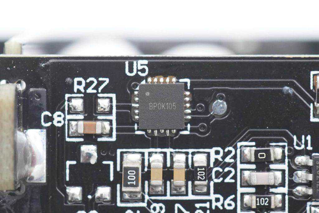 丝印BP0K105的单片机芯片,用于插座的过压过流保护检测。