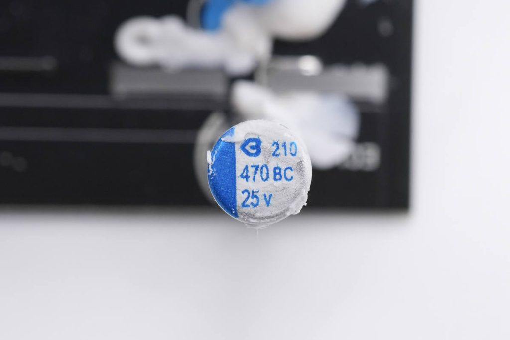 小板背面焊接变压器,固态电容和一颗电解电容。