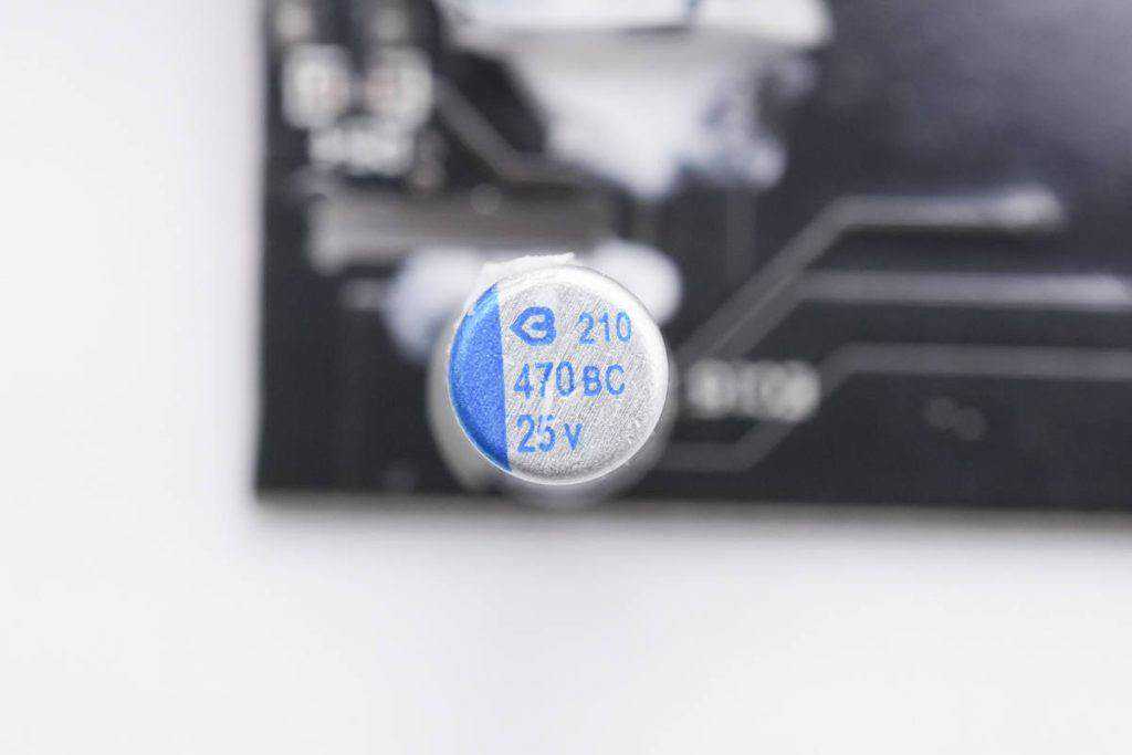 两颗输出滤波电容均为绿宝石BC系列固态电容,规格为470μF25V。