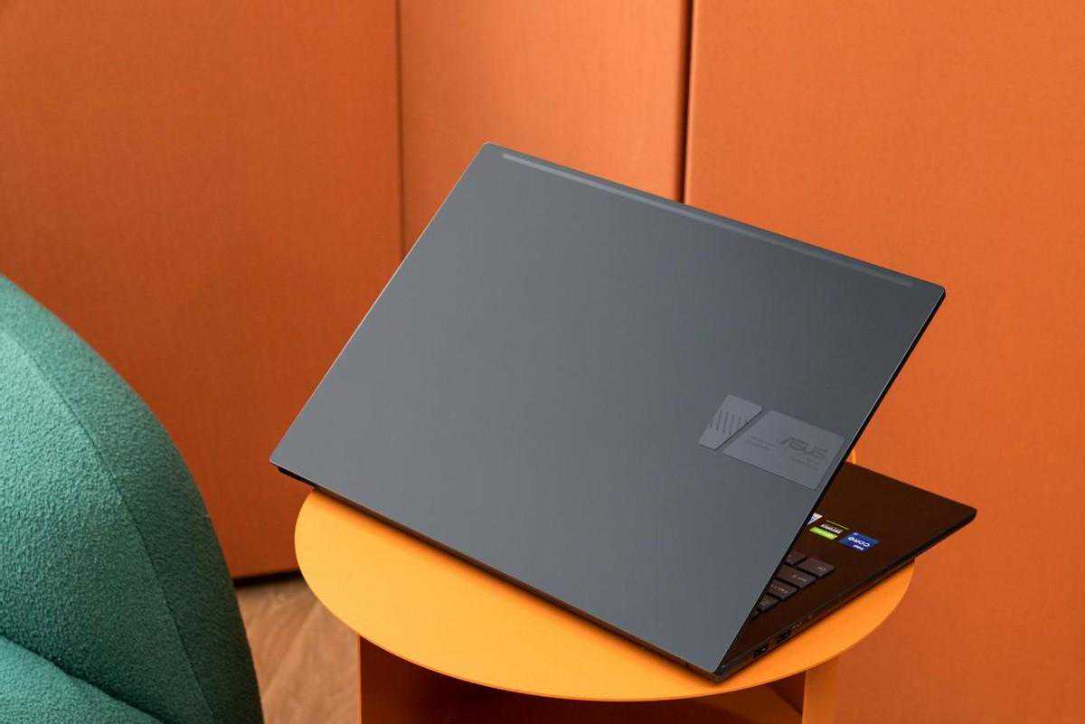 灵耀Pro162022的机身通体黑色,整体造型沉稳内敛,A面相当简洁,仅有华硕的金属浮雕LOGO,契合各种使用环境,比如教室、图书馆或者商务会议都没问题。