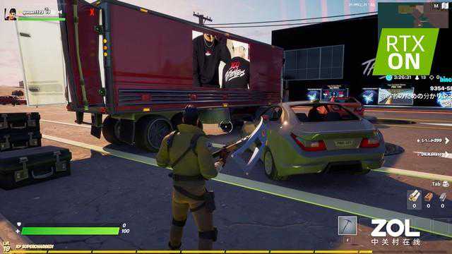堡垒之夜的光追效果还是比较明显的,其中加入了反射、全局照明和路径追踪等效果。卡车车身上的反射较为明显,角色身上的环境光在打开光追后更为写实,另外仔细看的话远处建筑物的玻璃同样有光线的反射,整体画质改善非常明显。