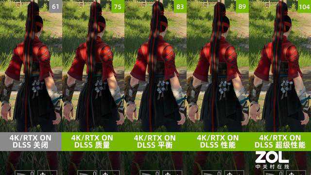 而在DLSS性能模式中,头发的质感则更差一些,并且发带的编织感有明显下降,另外腰间的配置边缘也会变模糊。最后在DLSS超级性能模式中,角色整体则会较糊,无论是头发还是服饰,所以如果不是非常追求高帧数的玩家,不建议开启DLSS超级性能模式。
