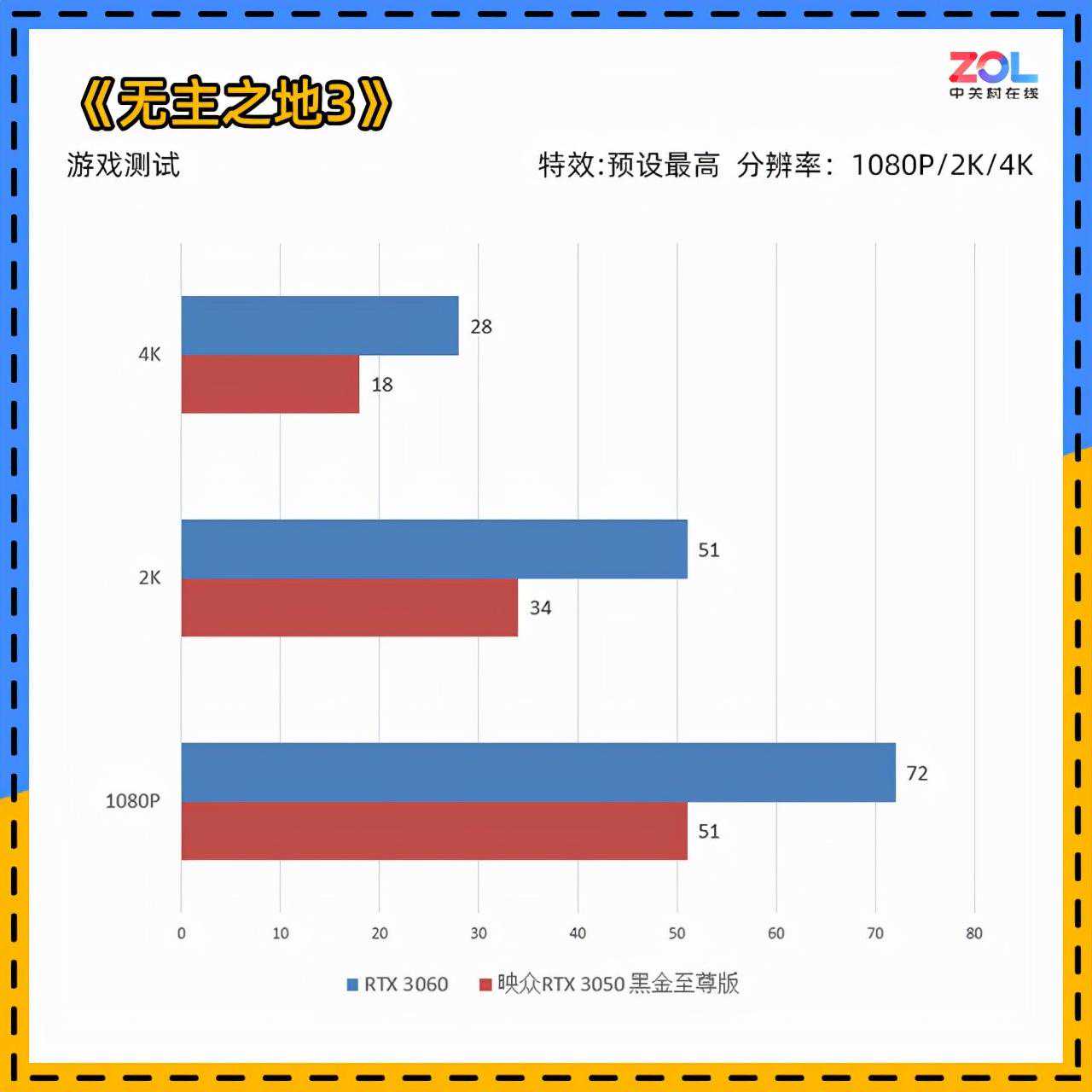 不过从性能本身来说,RTX3050即使和甜品级的RTX3060也有着一定差距。在没有NVIDIA技术的游戏上,难以发挥最大实力。