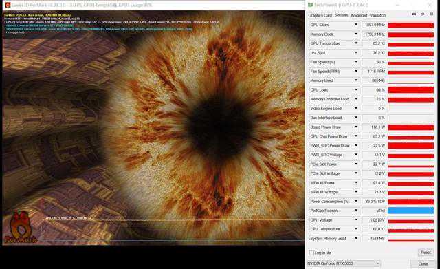 温度方面,本次的映众RTX3050黑金至尊版经过20分钟左右的拷机,温度稳定为65℃左右,最高达到66℃。