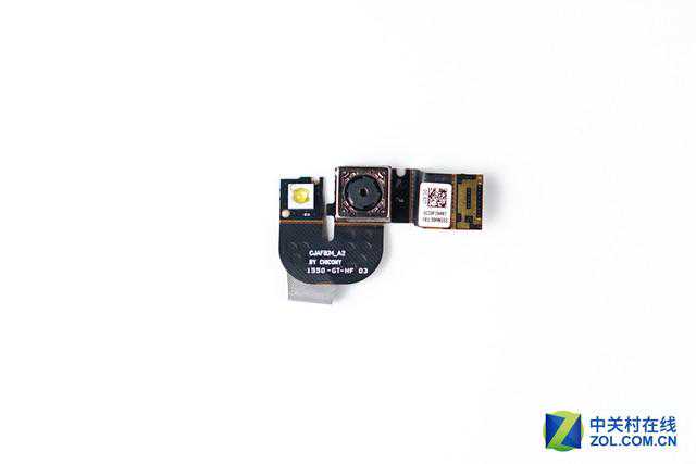 在这款逻辑板的背面,除了有一个与主板连接的接口外,还有一个与后置摄像头连接的接口,这颗摄像头的有效像素为800万,同样来自群光电子。在摄像头的旁边还有一颗LED闪光灯。