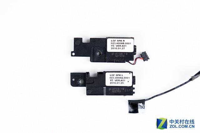 接下来取下的位于平板电脑左右两侧的扬声器,体积不大也不小,两枚扬声器的功率均为1瓦。