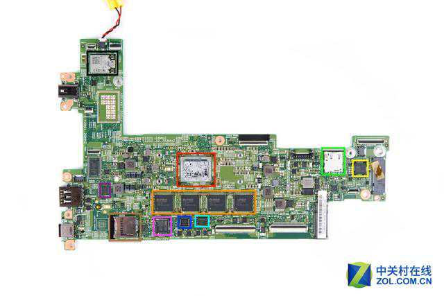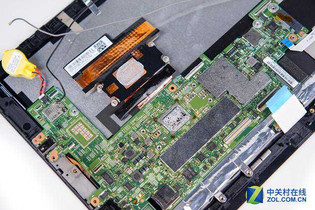 取下ThinkPadX1Tablet的内置电池后,我们来看看位于电池上方的小逻辑板上都有哪些电子元件。