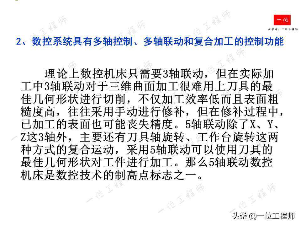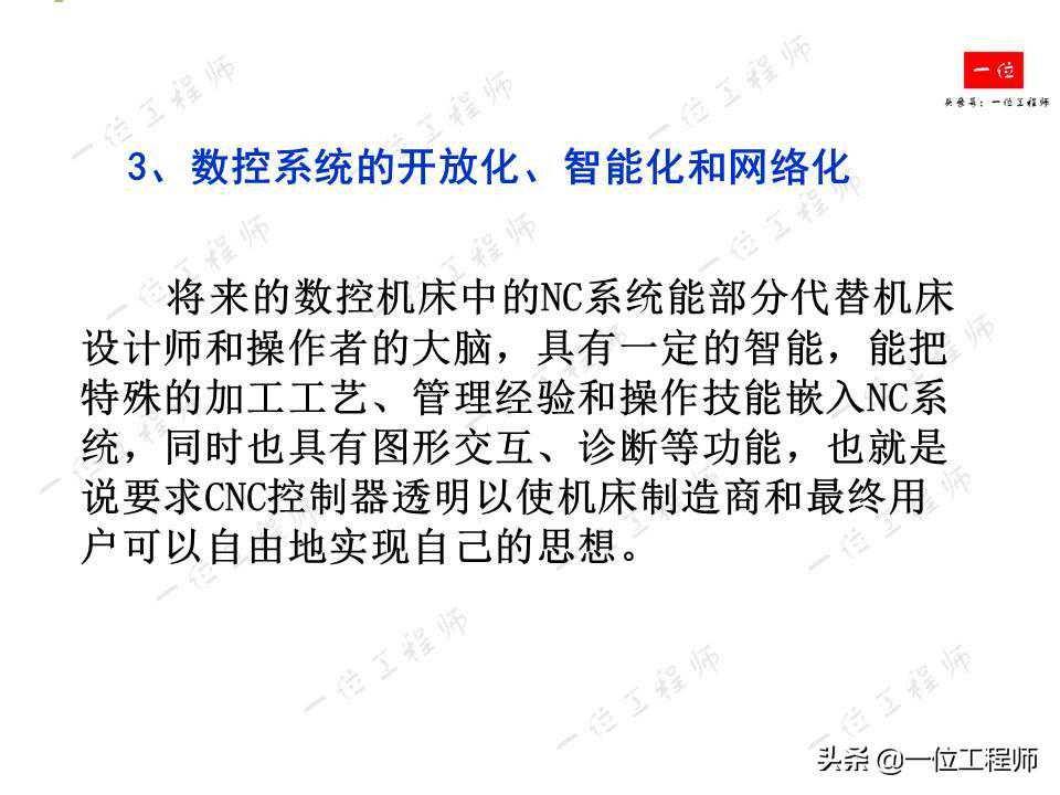 1、高速、高精度加工;2、数控系统具有多轴控制、多轴联动和复合加工的控制功能;3、数控系统开放化、智能化和网络化。
