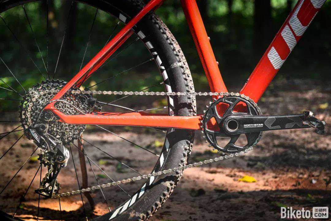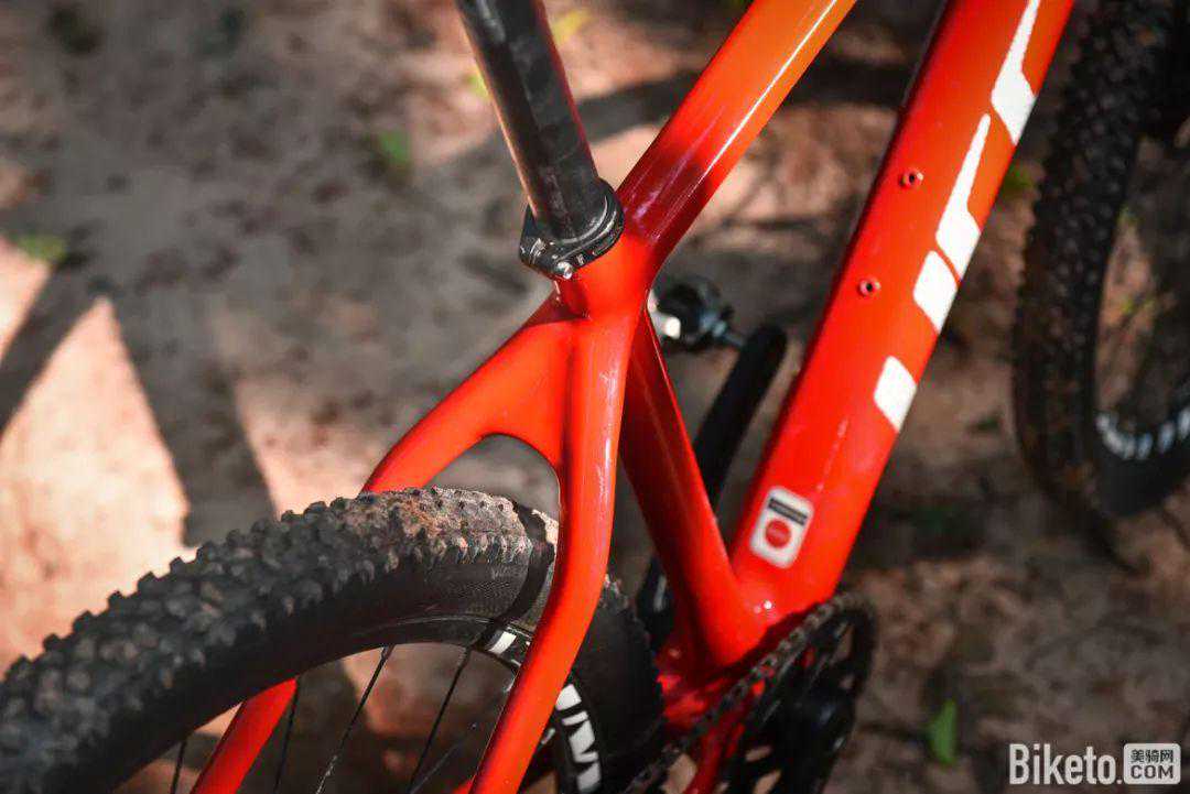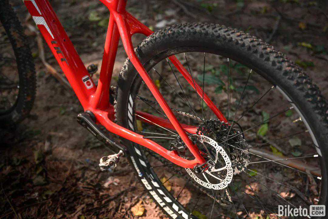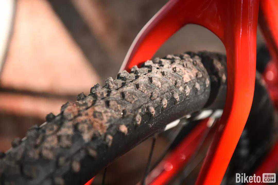 足够宽松的后叉开档能够避免在泥泞环境中泥沙堆积车架的情况发生。胎齿密度深度适中,兼顾速度骑乘和越野路况。