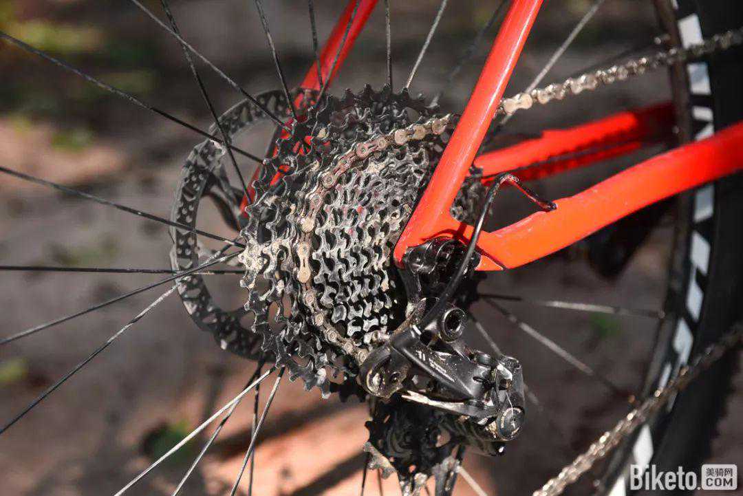 11-42T的飞轮对这款车的定位来说完全足够了,不信你看看小编评测期间新鲜出炉的飞轮上的泥渍,42T盘片的利用率尚且如此,你还期望更大的飞轮吗?“当然有更大飞轮配置的车型,不过预算会跟着你的期望一同起飞”。