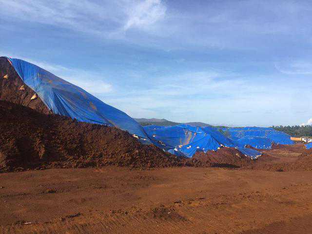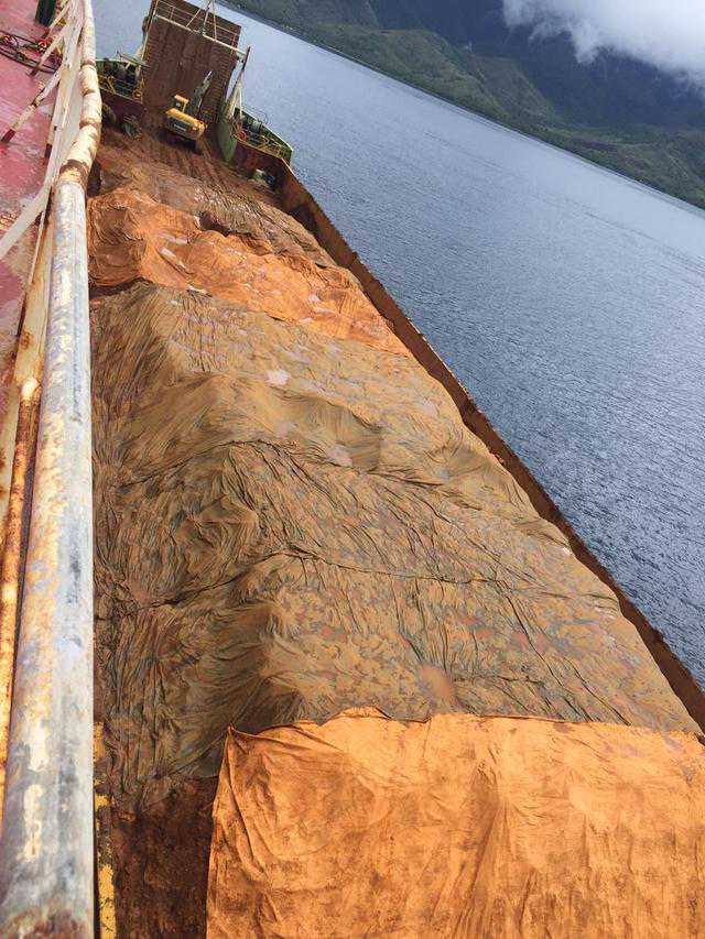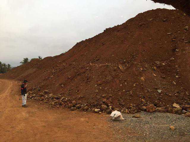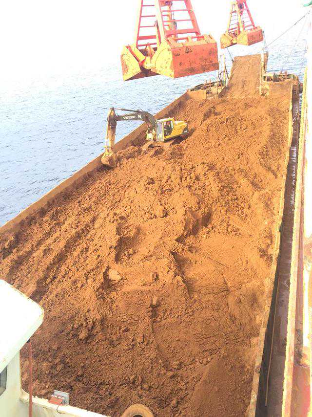 上面这张照片是在菲律宾三巴里斯堆场放的镍矿,这个矿看起来比较干。矿越干就可以堆得越高,太湿会堆不起来。